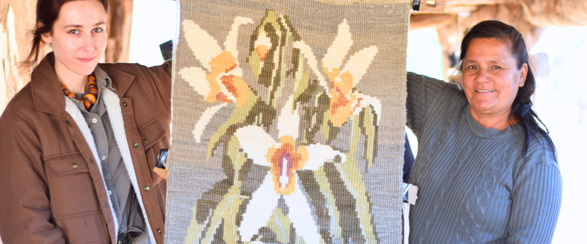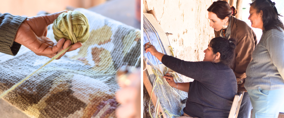 Materiales: Lana de oveja hilada a mano; pigmentos naturales del monte chaqueño (raíces, cortezas, hojas, frutos y tierras)